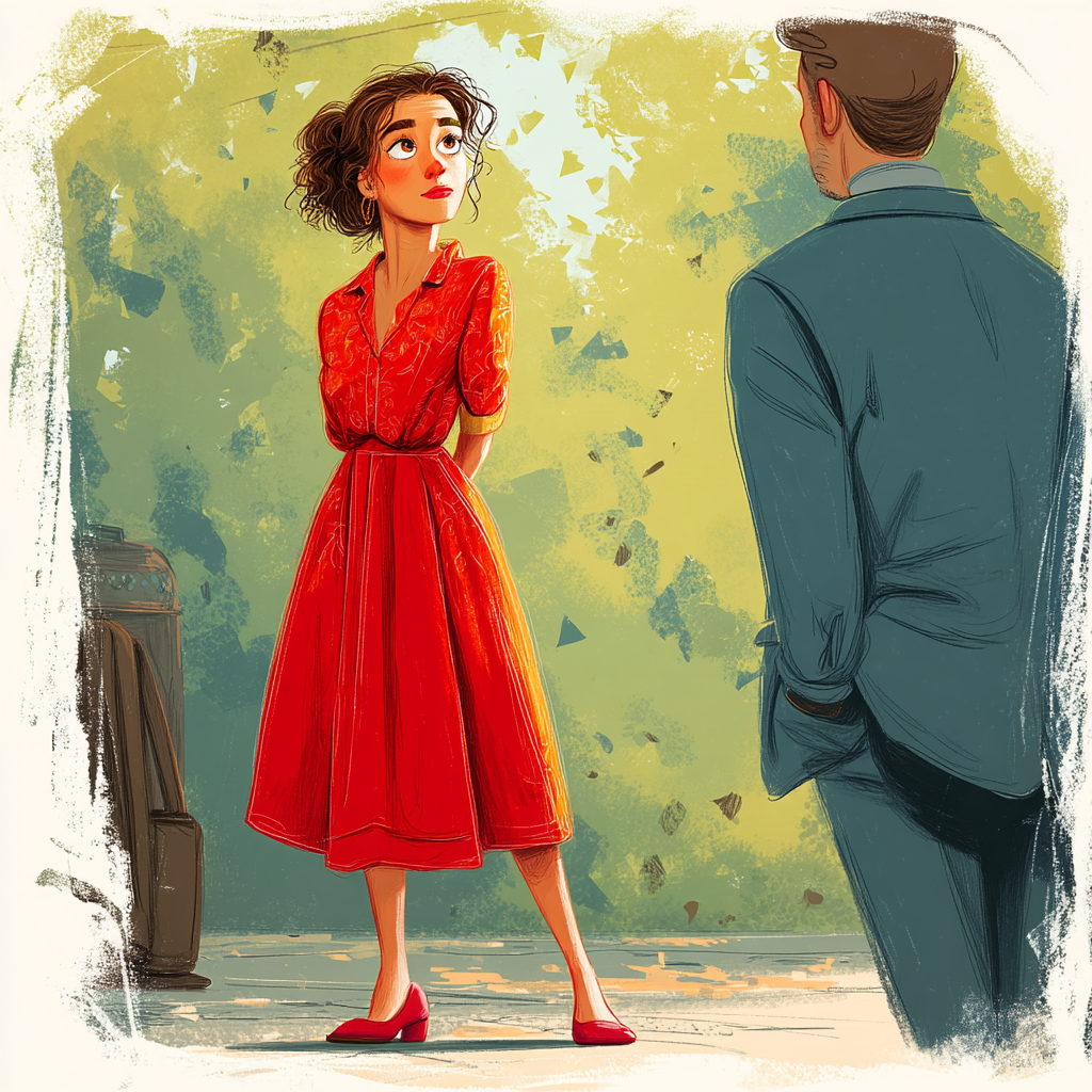 Sara ser også på alle skoene på gulvet. Hun har ett par brune sko og ett par røde sko. Hun tenker litt. Hvilke sko skal hun velge i dag? Kanskje en rød kjole og røde sko? Eller grønn bukse og blå jakke? Valget er ikke lett!