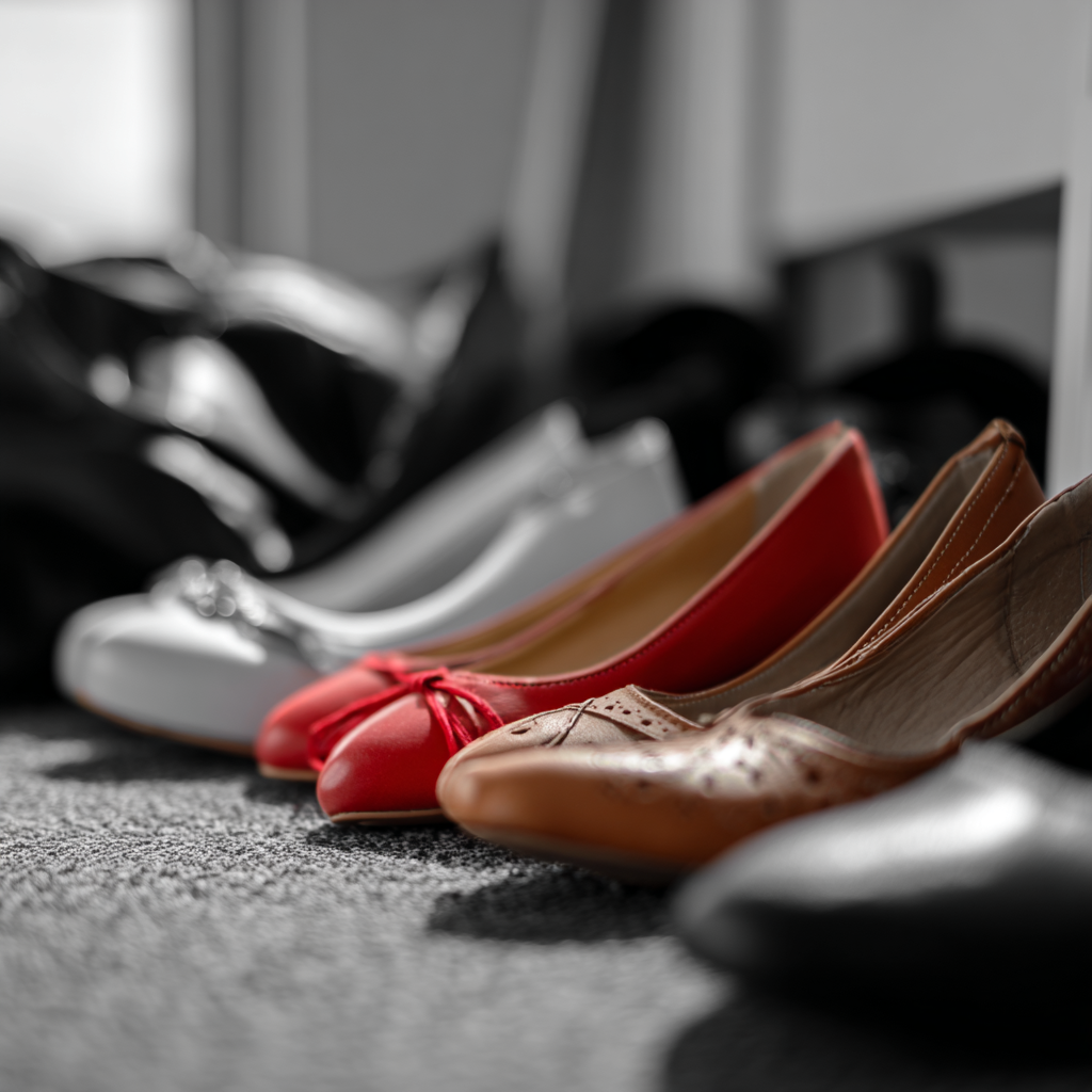 Hun tenker litt. Hvilke sko skal hun velge i dag?